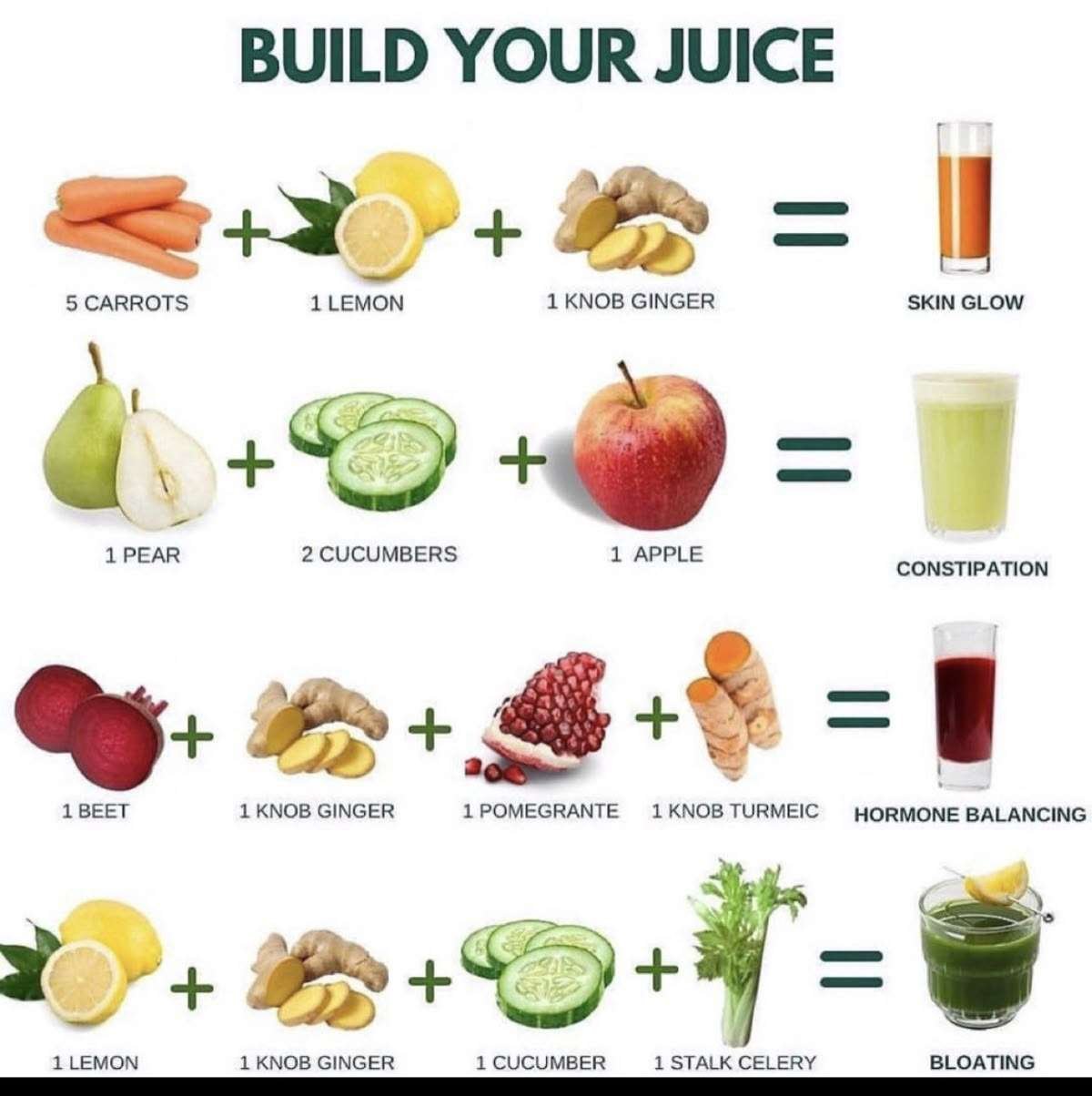 • 1/2 lemon (peeled) This balanced juice is hydrating, mild, and nutrient-packed.